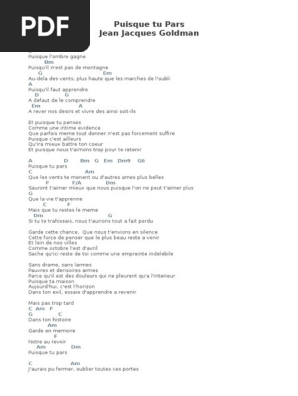 Puisque Tu Pars Jj Goldman Pdf